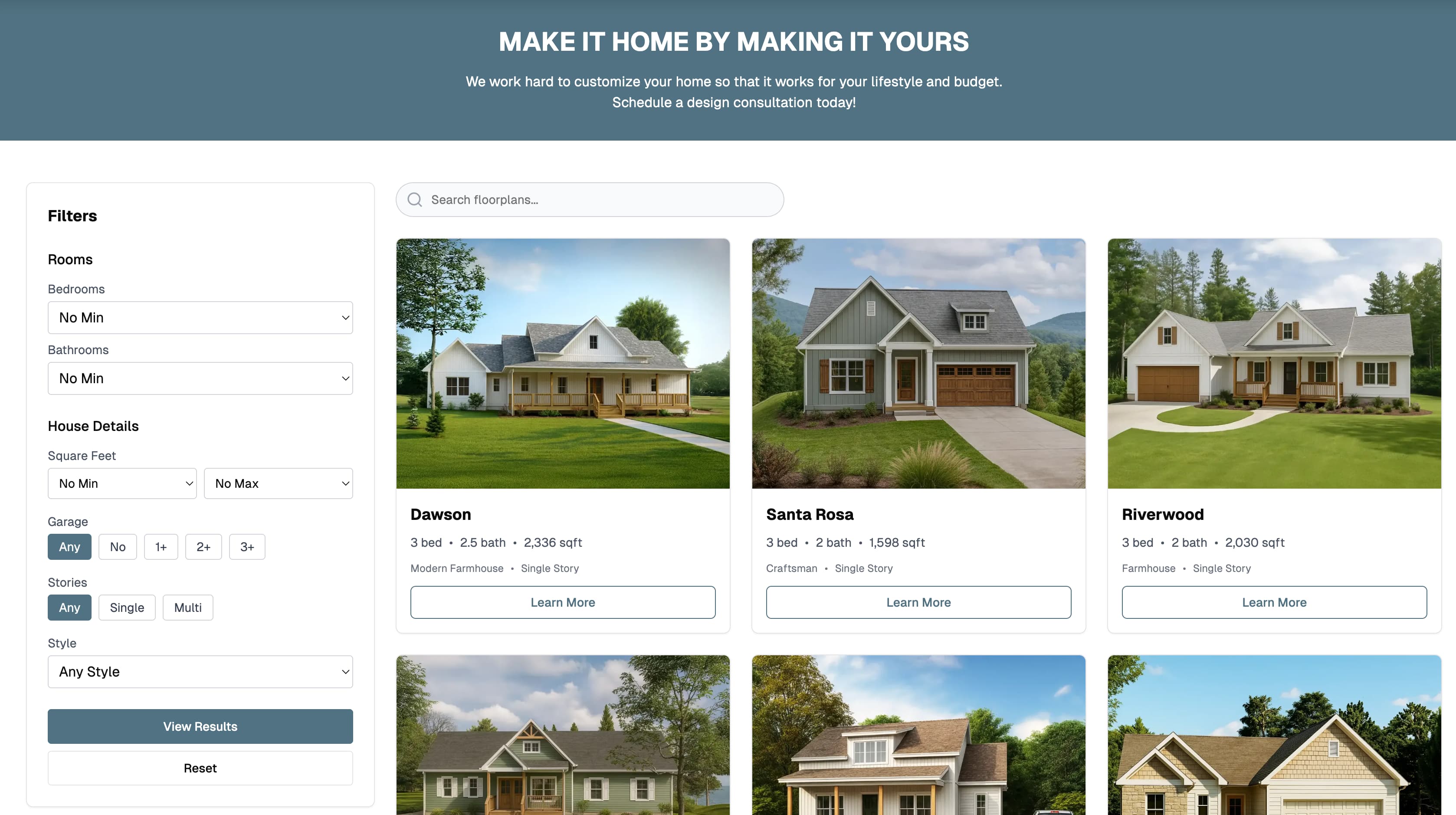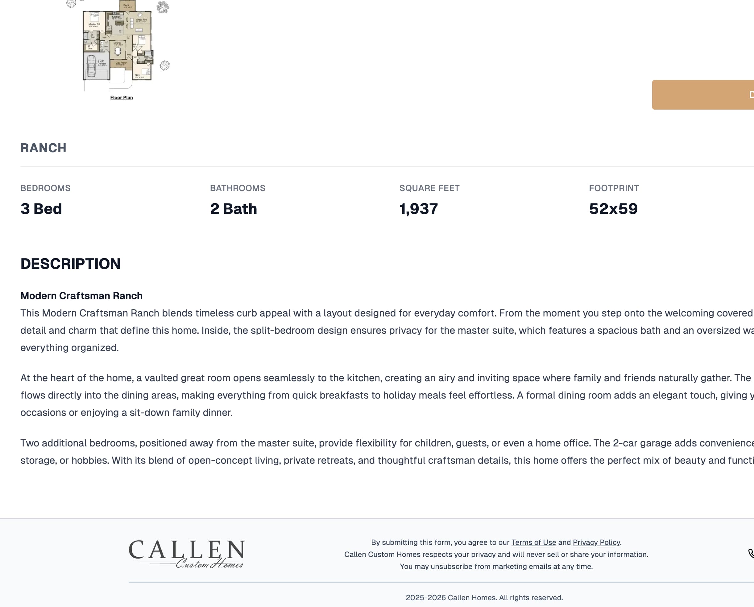 This website created for Callen Homes, a custom home builder in the Southeast, showcases their portfolio of custom homes, services, and provides an easy way for potential clients to get in touch.